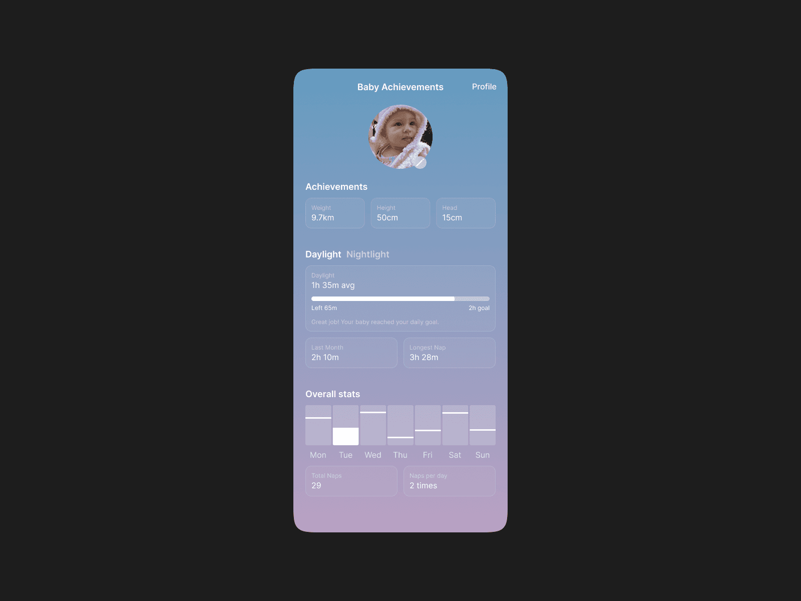 Designing calm, connection, and confidence for modern parents. Kidio is a mobile app that helps parents support their baby’s health and sleep routines through AI-assisted care. Designed to feel like a gentle, always-there companion, Kidio blends soothing soundscapes, personalized sleep rituals, and tailored guidance into a seamless experience that nurtures both baby and caregiver. This project focused on creating a warm, intuitive interface that reduces anxiety and builds trust. The UI is soft, minimal, and emotionally resonant, while the UX prioritizes quick access to features during high-stress moments, such as late-night wake-ups or nap time struggles. Kidio reimagines baby care through the lens of emotional design and AI — turning technology into a source of comfort.